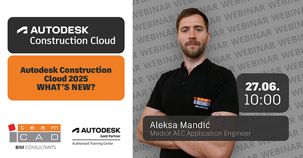 TeamCAD, authorized Autodesk training center, is hosting a free webinar "Autodesk Construction Cloud 2025 - What's new?" on 27.6.2024. at 10 am.