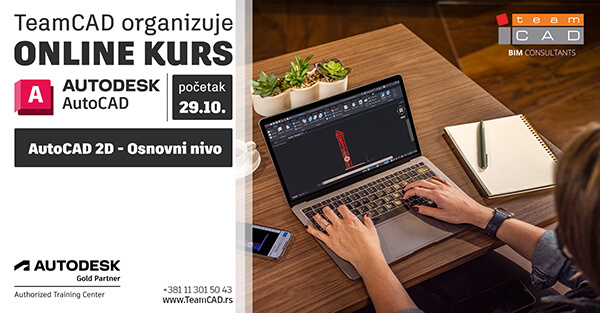 TeamCAD, kao autorizovani Autodesk trening centar (Autodesk Authorized Training Center), organizuje online kurs AutoCAD 2D - osnovni nivo, koji počinje 29.10.2025. godine.