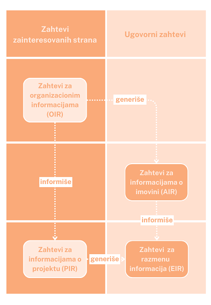 - Zahtevi za organizacionim informacijama ili OIR – Organizational Information Requirements – sadrži informacije neophodne za definisanje ciljeva naručioca;