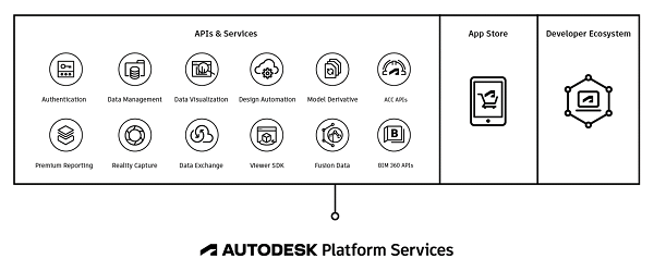 Na Autodesk Univerzitetu 2022. Endu Anagnost, izvršni direktor kompanije Autodesk, otkrio je da se Autodesk Platform Services sastoji od industrijskih cloud-a i skupa uobičajenih usluga zasnovanih na cloud tehnologiji. Na platformi postoje 4 komponente: