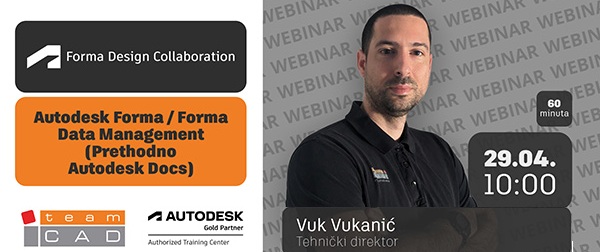 TeamCAD, ovlašćeni Autodesk trening centar, 29.4.2026. u 10h organizuje besplatan webinar - Autodesk Forma / Forma Data Management (Prethodno Autodesk DOCS).