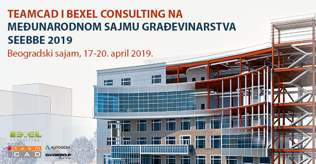 TeamCAD i Bexel Consulting će predstaviti BIM rešenja i usluge u oblasti visokogradnje na predstojećem Sajmu građevinarstva, koji se održava od 17. do 20. aprila 2019. godine na Beogradskom sajmu. Bićemo u Hali 1, blizu ulaza, na štandu broj 1318.