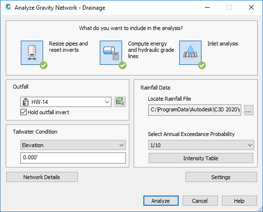 • Unapređena komanda Analyze Gravity Network za analizu mreže cevovoda i ažuriranje same mreže u odnosu na razultate analize.