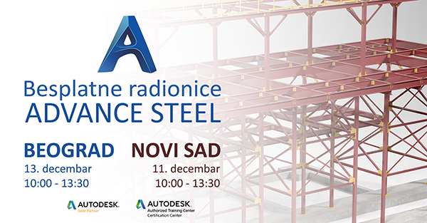 Zadovoljstvo nam je da Vas pozovemo da nam se pridružite na besplatnim radionicama za Autodesk program Advance Steel koje će biti održana u Beogradu i u Novom Sadu u prostorijama kompanije TeamCAD, autorizovanog Autodesk trening i sertifikacionog centra.
