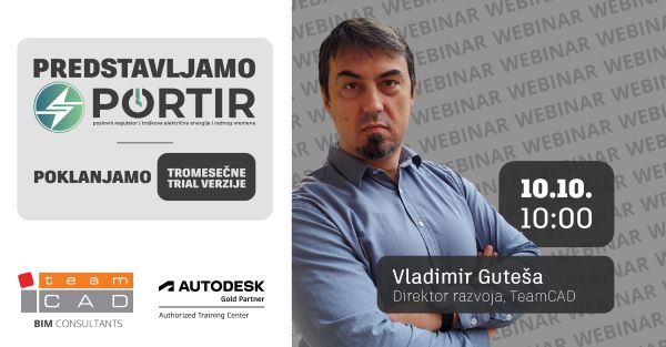 TeamCAD, ovlašćeni Autodesk trening centar, 10.10.2024. godine u 10 časova vas poziva na besplatan webinar „PORTIR", o rešenju koje omogućava da podignite evidenciju prisutnosti zaposlenih na viši nivo, i to uz minimalne troškove i maksimalnu uštedu energije. Jedan uređaj i pristup internetu je sve što vam je potrebno za preciznu evidenciju, bez obzira na lokaciju.