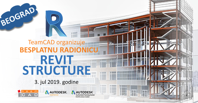 Zadovoljstvo nam je da Vas pozovemo da nam se pridružite na besplatnoj radionici za Autodesk program Revit Structure koja će biti održana u Beogradu u prostorijama kompanije TeamCAD, autorizovanog Autodesk trening i sertifikacionog centra.