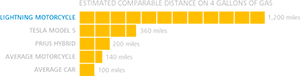 Dijagram sa slike prikazuje efikasnost Lightning motora u poređenju sa ostalim vozilima. Ovo je jedan do ključnih razloga zbog kojih je Ričard Hetfild promovisao električna vozila na dva točka od kada je napravio prvi električni motor 2006. godine.